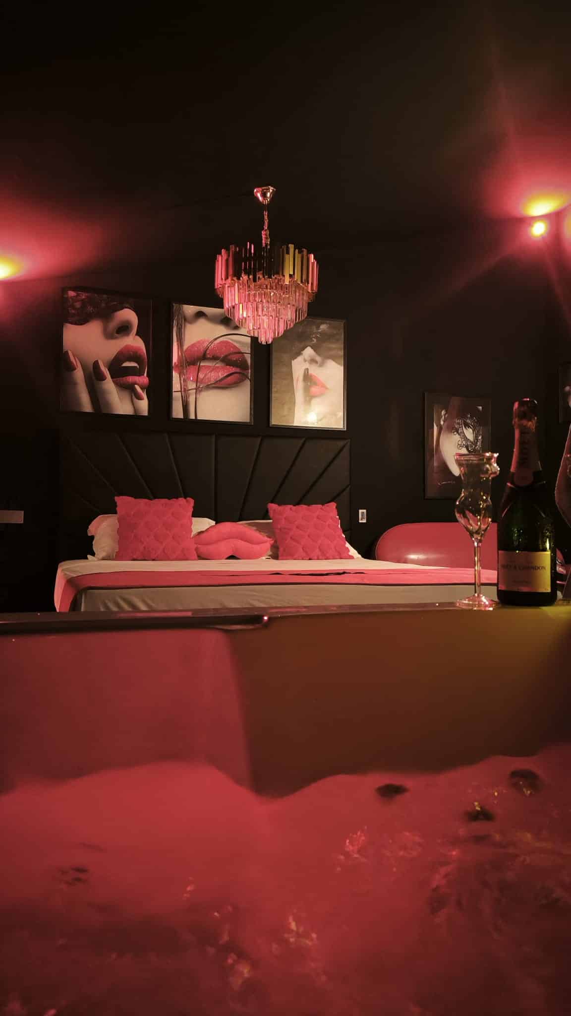 Tout, dans cet écrin, célèbre la sensualité : les lumières tamisées, les textures raffinées, la musique envoûtante… Un univers conçu pour deux, entre luxe et érotisme, où chaque instant devient une expérience.